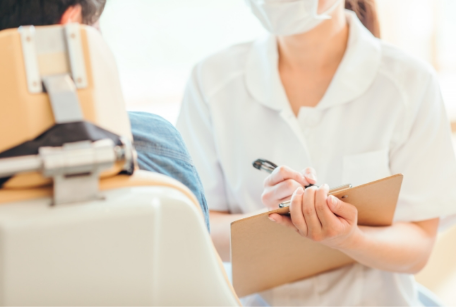 訪問診療を行うとケアマネジャー様等書類の提出が必要な場合があります。各ケアマネジャー様の事業所や施設まわりをしてもらい、情報共有を行いながら口腔内に関して不便をしている患者様がいないかの確認をしてもらいます。